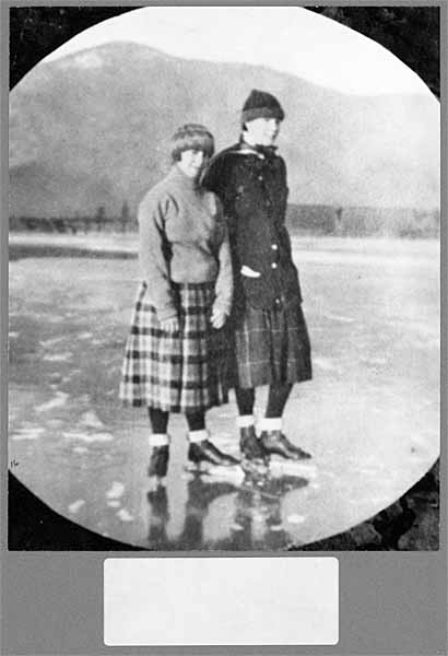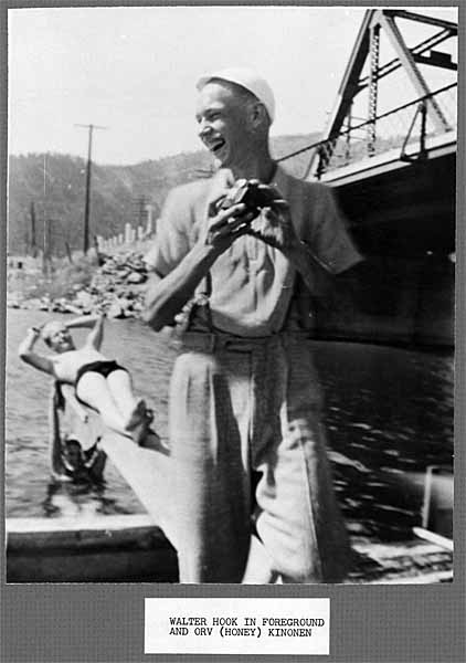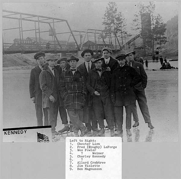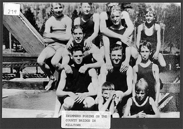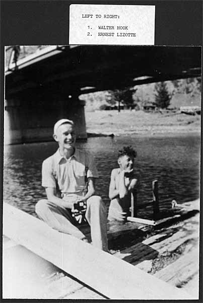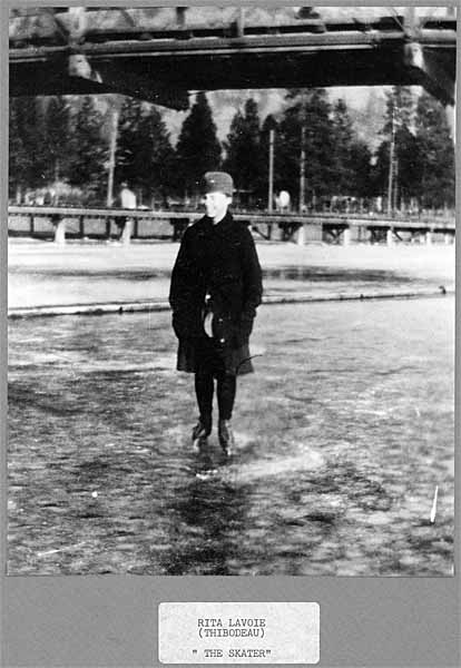 Swimmers on bridge    Walter Hook holding a camera and Orv      Walter Hook and Ernest Lizotte    Rita Lavoie   Skaters    Men skaters